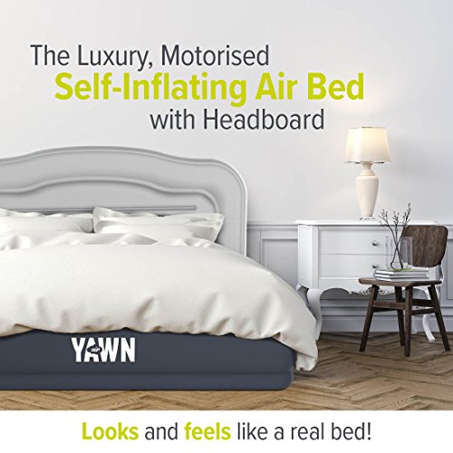 YAWN AIR Self-Inflating Airbed Double Size – Great Guest Bed, Camping Mattress – Built-in Pump & Headboard – Grey Fabric Material – Available in UK Single, Double & King