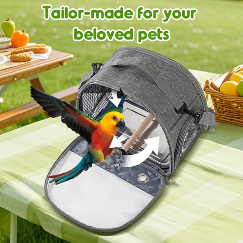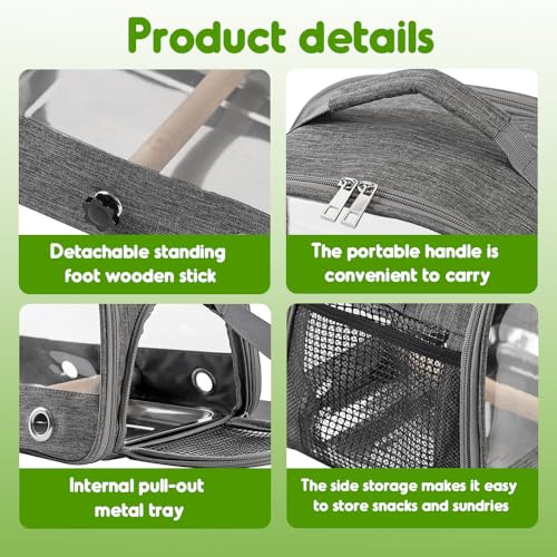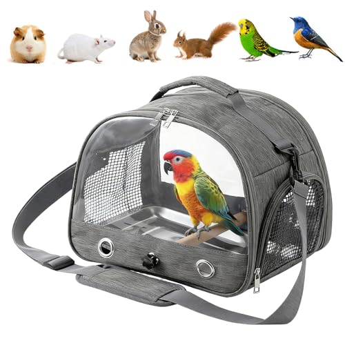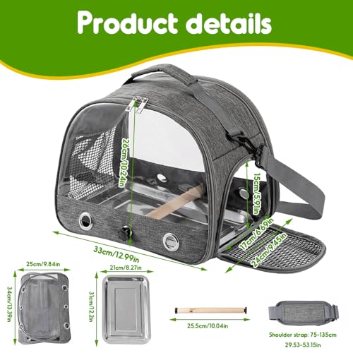 Bird Travel Carrier with Standing Perch and stainless Steel Tray,Breathable Collapsible Small Bird Carrier Travel Bag for Parrot Parakeet Small Animals