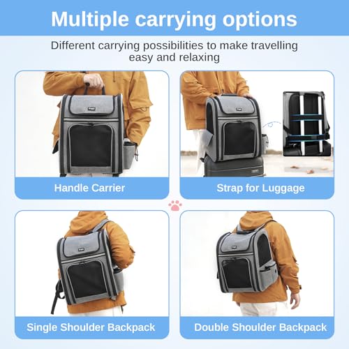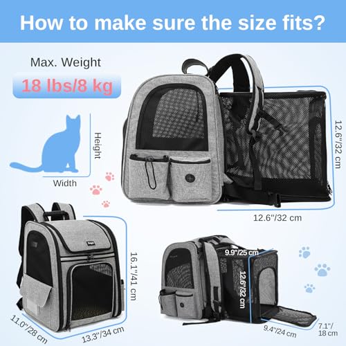 Expandable Cat Carrier Backpack for Air Travel, Pet Backpack for Cats & Small Pets up to 17lbs (8kg), Foldable & Breathable with Front Mesh Window, Comfortable Pet Carrier Bag for Hiking (Grey)