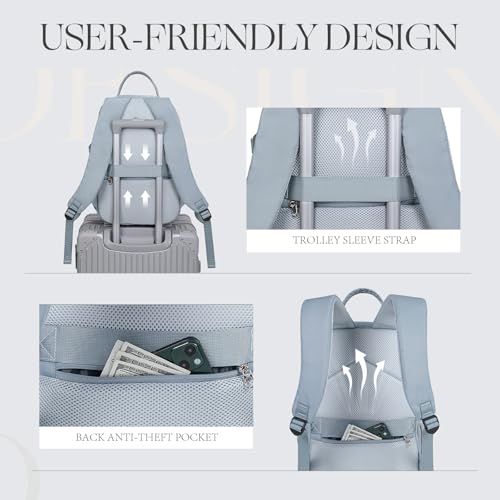 【SECURE ANTI-THEFT & LUGGAGE STRAP】Includes a hidden anti-theft zipper pocket on the back to store passports, wallets, or small gadgets. The back luggage strap allows for secure attachment to suitcase handles for easier airport navigation. This versatile rucksack is suitable for men and women, whether for flights, work, weekend trips, or outdoor exploration.
