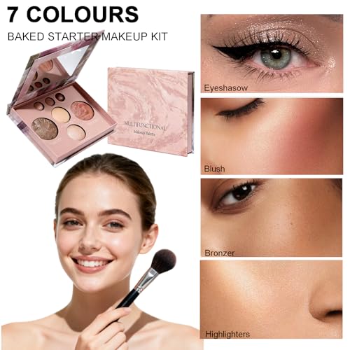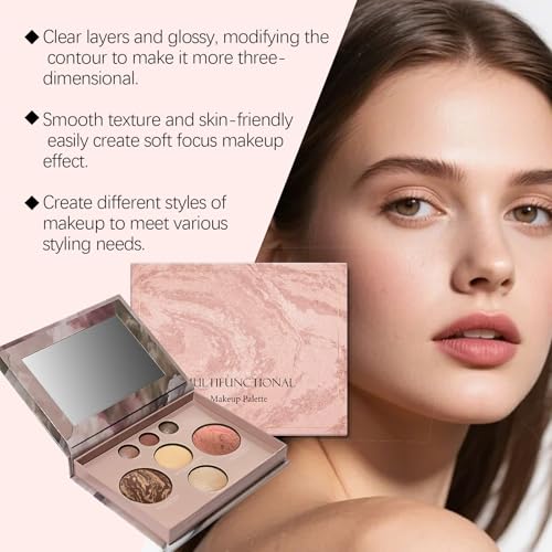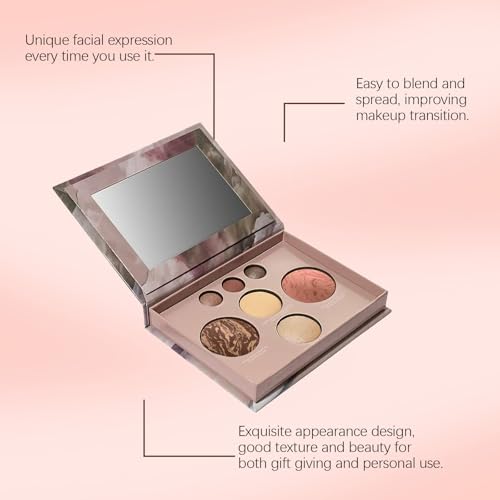 【All-in-One Makeup Palette with 7 Shades】This baked makeup palette includes bronzer, blush, 2 highlighters, and 3 eyeshadows in one compact palette. Suitable for creating a variety of looks, from natural day makeup to more defined evening styles