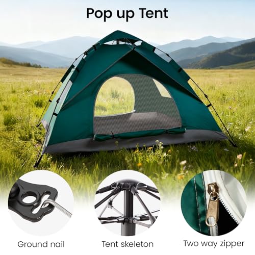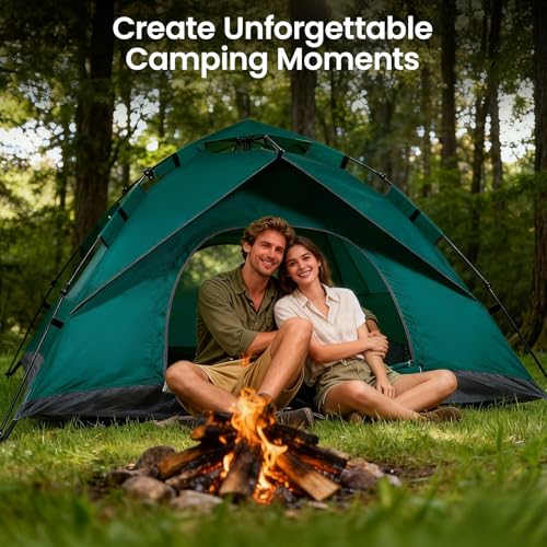 Pop Up Tent for 4 Person, Automatic Instant Camping Tent with Upgraded 210D Oxford, Waterproof Windproof & Insect Proof for 3 Seconds Quick Setup, Perfect for Outdoor, Hiking Family Camping